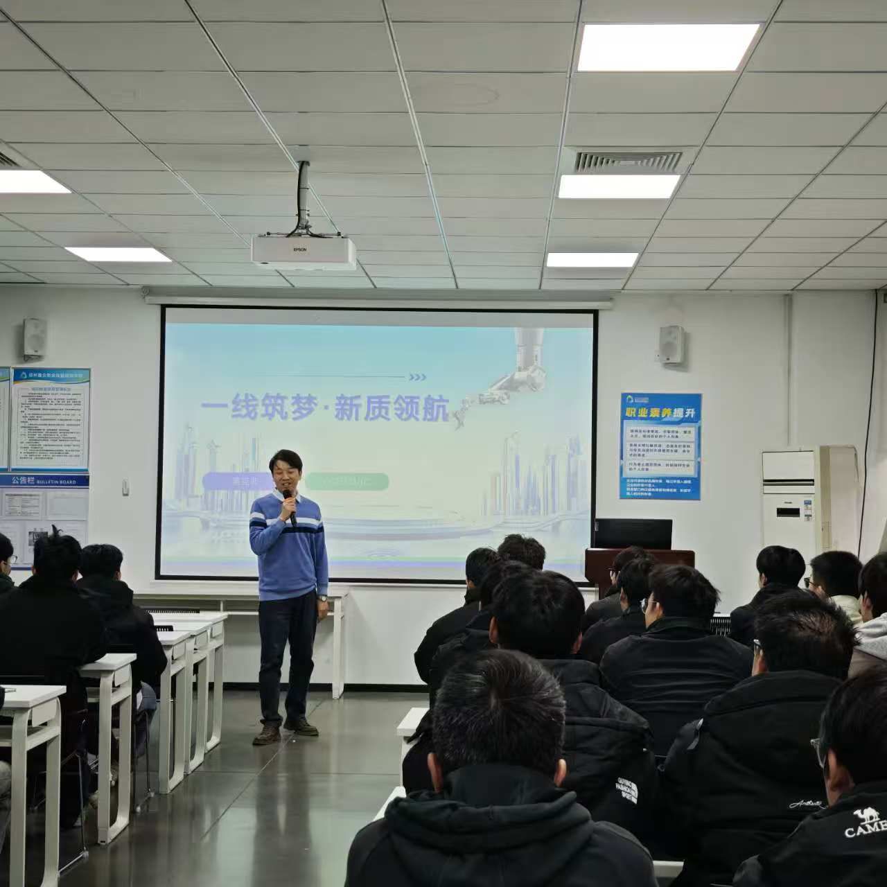 在订单班开班现场,马克思主义学院教师以“一线筑梦,新质领航”为主题,为学生讲授了一堂生动的思政课。课程从“时代之问——为何必须推动产业升级”切入,深入剖析了我国经济发展从“规模扩张”转向“质量提升”、从“短缺时代”迈向“品质需求”的内在逻辑与时代必然。授课教师紧密结合宇通汽车在践行新发展理念、推动绿色智造与全球化发展方面的生动实践,深入浅出地解读了“创新、协调、绿色、开放、共享”发展理念的丰富内涵与实践伟力,激励学生既要锤炼扎实精湛的专业技能,更要涵养产业报国、实干兴邦的家国情怀,努力成长为符合新时代要求、兼具技术素养与思想深度的复合型人才。