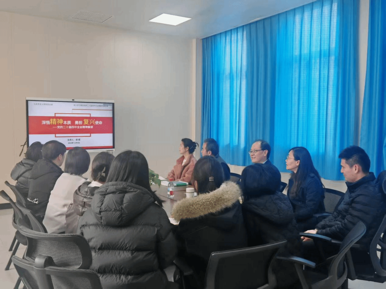 12月9日,马克思主义学院党支部举行“深悟精神实质 勇担时代使命——党的二十届四中全会精神解读”专题党课,学校党委副书记、副校长胡斌主讲,学院全体党员参加。